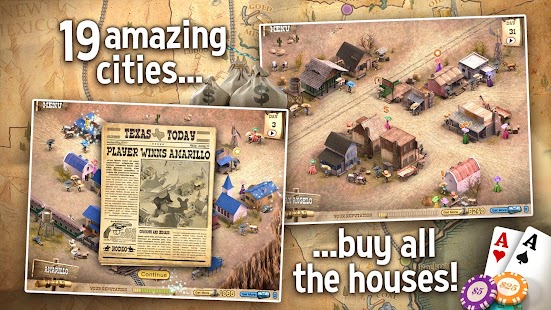 Texas Holdem Poker Offline te lleva de nuevo al indómito oeste, derecho a las origen de este apasionante juego de cartas. Podrás ser capaz de jugar contra los veteranos expertos competidores del oeste. ¡Es hora de que emplees tus capacidades en el Poker para empezar con poco, y después ir a competir y triunfar a lo grande, negociar casas, solicitar pertenencias industriales, recaudar rentas y finalmente, dirigir Texas! Esto no es sencillamente una consecuencia del juego Texas Holdem Poker ¡es un juego totalmente nuevo, cargado de cuantiosas novedades!, descarga Texas Holdem Poker el juego apk full modificado con monedas y absolutamente desbloqueado.